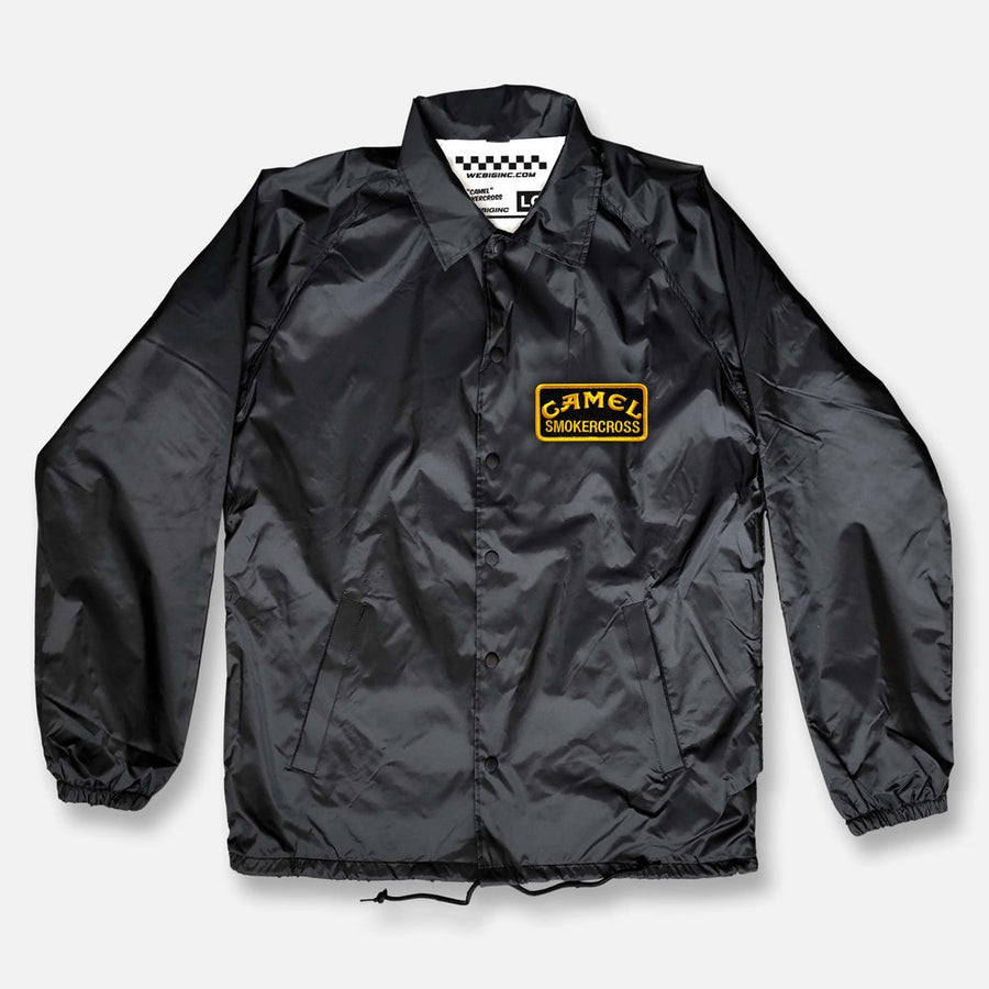 Time to git all frothy & radical this winter in our new Camel Smokercross coaches jacket! You may look like a cozy turd indoors....but at least now you can go outside and battle the earth in style you crazy ass playboy. Bout time to bring all the missing pieces of yer life together in this NEW AND IMPROVED Camel Smokercross coaches jacket. • Please allow up to 3 days for your jacket to be shipped out • 100% nylon water resistant shell • Features a heavyweight Camel embroidered twill patch • Metal 6 snap front closure • Elastic sleeve opening & drawcord bottom opening