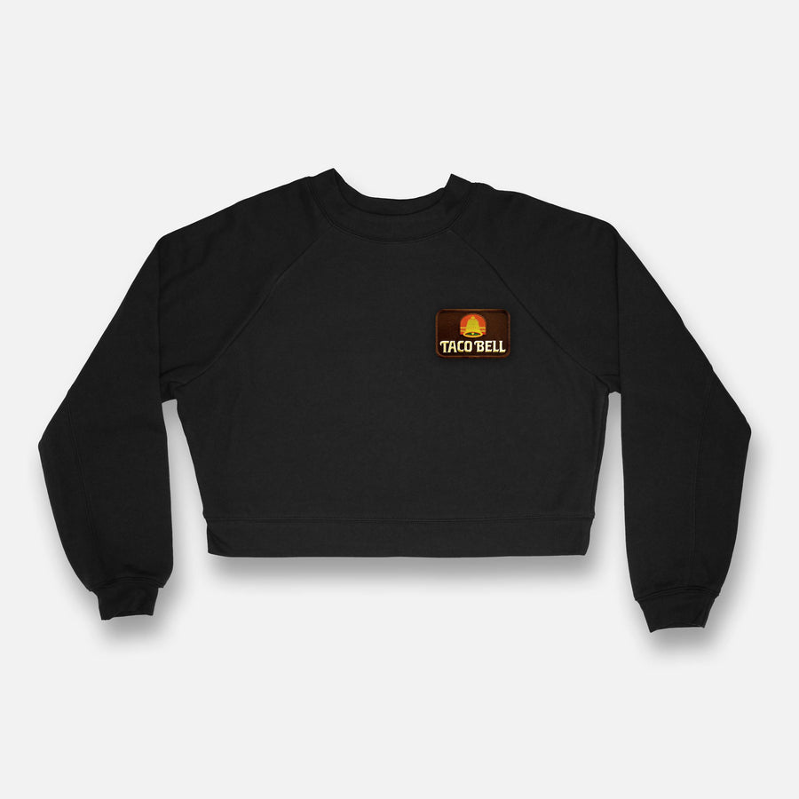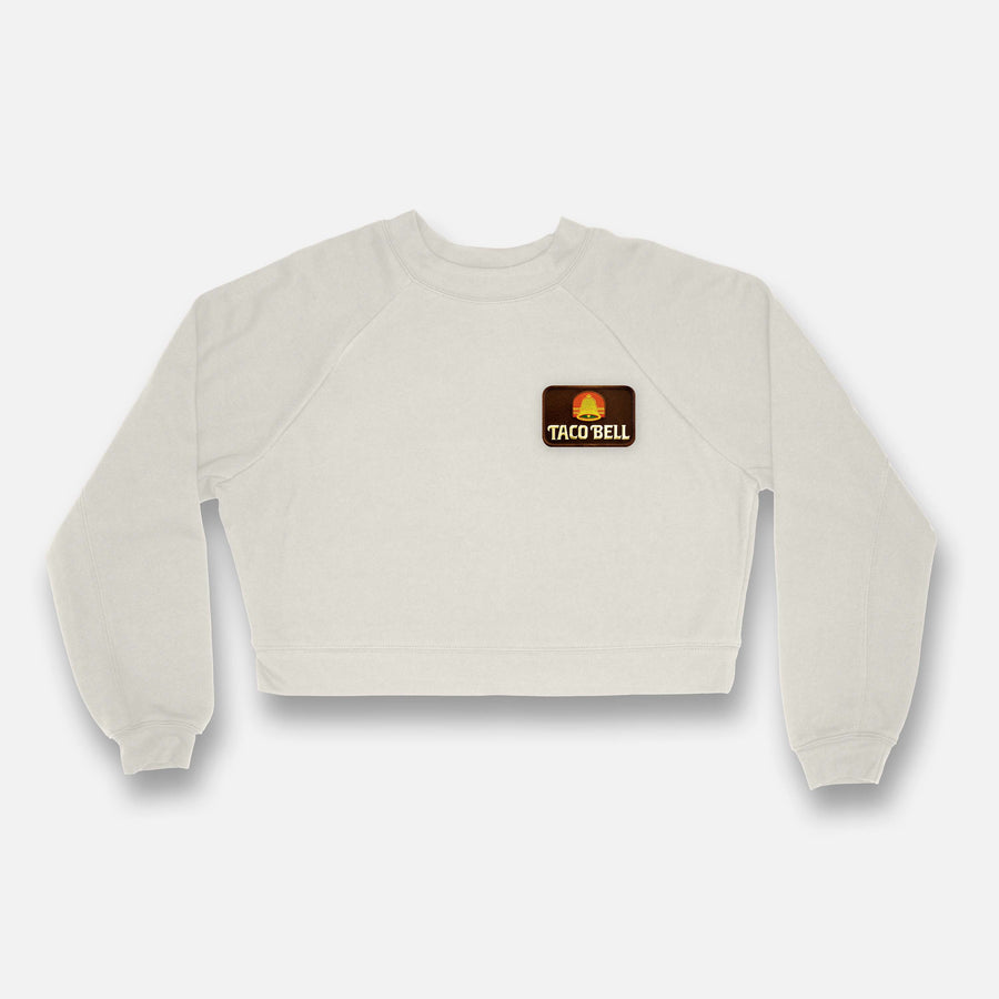 Our new Womens Crop Raglan Crewneck Pullover Fleece is all about subtle details. Crafted from our softest sponge fleece, this modern raglan features flattering contoured seaming on the sleeves and neckline, and is incredibly lightweight and warm. Wear it alone or layer for year-round comfort. We finished it off with a Vintage Taco Bell Patch sewn on the front!