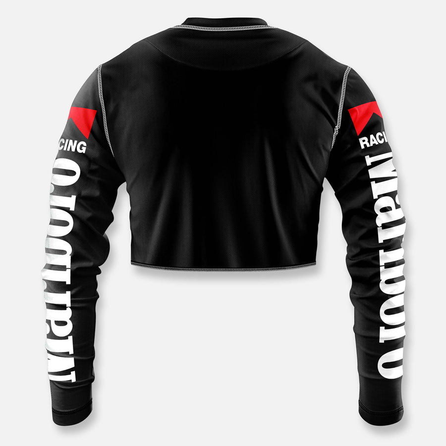 If you want your name & number printed on the back...then you will need to purchase a Women's Name & Number along with your Crop Jersey. The Women's Name & Number printing can be found at the bottom of this page. Please note....if you order your name & number to be printed on the back of this Crop Marlboro Racing Jersey your name & number will be printed in WHITE. To let me know what name and number you want written on your jersey please send a text with your order number to 949-292-3570 and let me know what name and number you want printed on the back of your jersey. Or you can write what you want in the notes or instructions box on the checkout page.