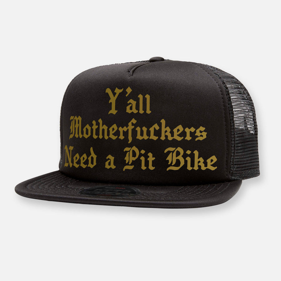 • Y'all Need A Pit Bike logo printed on front foam panel